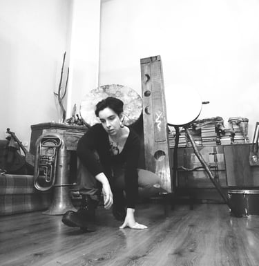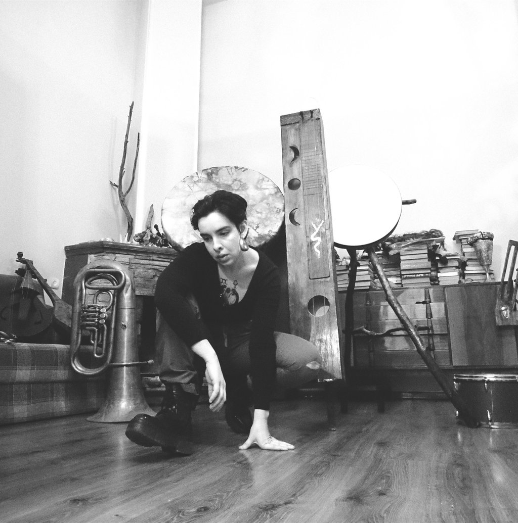 "Darja Kazimira" is a project of the experimental improviser, vocalist, multi-instrumentalist, and artist Darja-Kazimira Zimina, of Latgalian-Ukrainian origin based at the moment in Tbilisi (Georgia). The ideological core of the project is based on the idea of a regular search for a dynamic object-center of the ritual, through the construction and study of the principles of sacred space erection. The search is carried out through self-initiated rites of burial, funeral, sacred violence, fertility (cults of the ground), as the embodiment of the idea of transformation and its irreversibility. For this, the author also uses bodily practices, many of which are of an authentic masochistic nature. The genealogy of the tragic and ancient tragedy also has a great influence here. The main form of the musician's expression is long improvisational cycles of a pseudo-storytelling nature, for which the author uses they own asemiotical, idiosyncratic language, generating semantic keys that cannot be deciphered by the listener, thus supporting the idea of realizable meaning, as well as its complete absence.An equally significant point in the project is the choice of musical instruments, which usually varies from one improvisational cycle to another. Basically, these are authentic, ethnic instruments related to sacred-ritual ceremonies and traditions, as well as homemade instruments made by the author depending on the main audial idea: chuniri, changi, bass rebec, double zhalnik, aulos, barbiton, gongs, shaman drums, hand drums, dvojnice, gusle, sona, zurna, kanun, bones, horns, ģiga, gyaling, steel cello and many more.