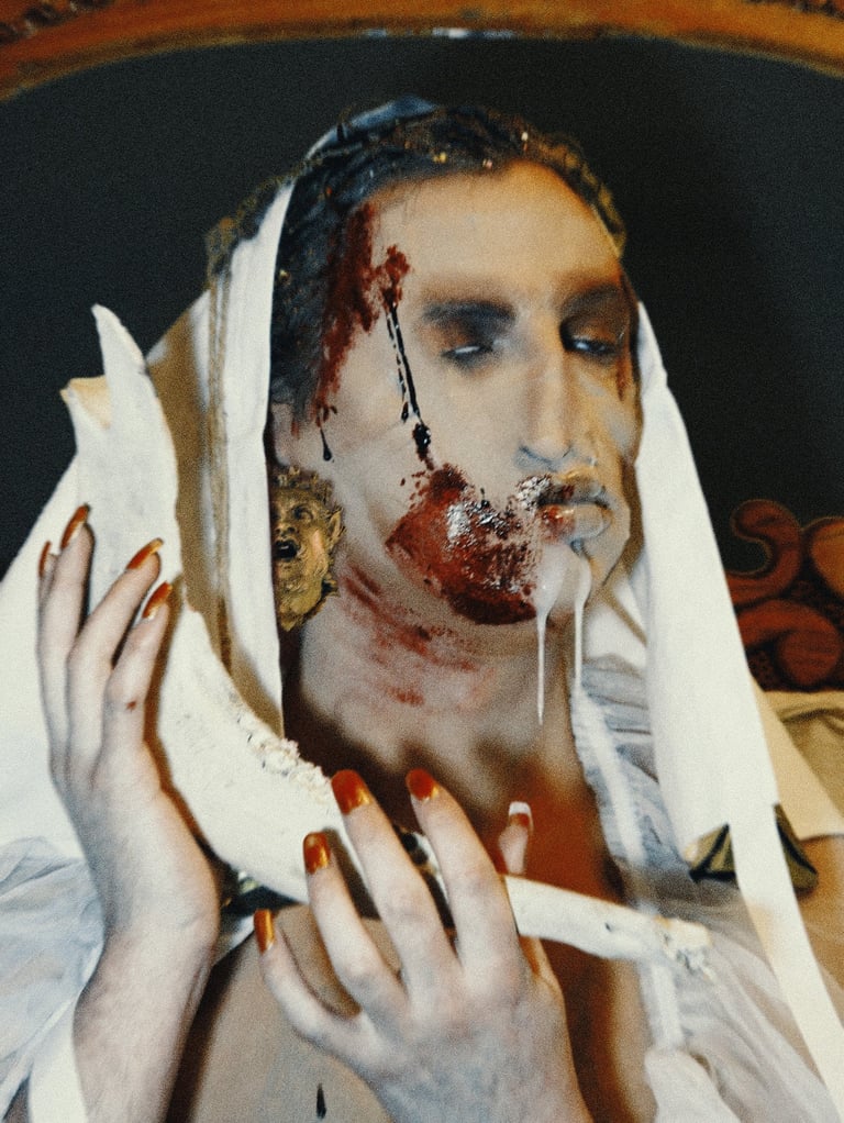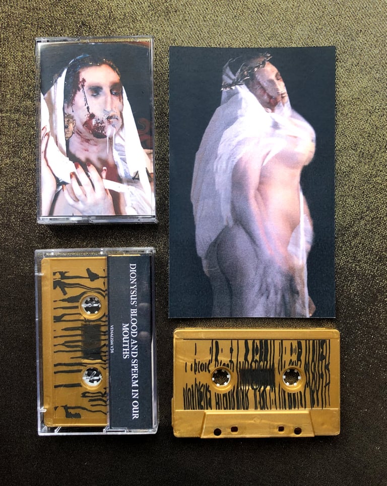 "Dionysus' blood and sperm in our mouths", consisting of five improvisational compositions, the main instrument in which is percussion, sometimes accompanied by a voice. This cycle is my sound experiment devoted to the study of trance states and the Dionysian mysteries, refracted through the prism of individual mental shifts and the search for mirroring in oneself of what is commonly referred to as Dionysian not so much as a scientific term, as a set of associations and concepts closely intertwined with the topic of personal psychic state, psychic deformation, raising private questions of insanity, sex and death, which, however, are always transformed into global, universal character, thus becoming ontological quantities and in fact sometimes a short metaphor for the entire human life cycle.