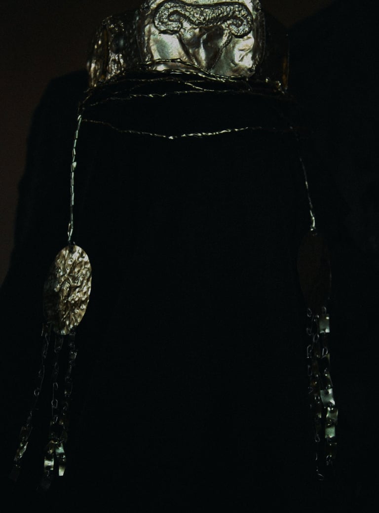 I'm Medea. The crowd of women is knocking on my door to tell me that Creusa, Jason's second wife, has become pregnant. I begin to scream like an beast and jump, convulsively making movements with my body, as if breaking it. A crowd of women are infected with my state. We all have ritual daggers that feed on blood, and they have been starving for a very long time. Creusa is in one of the rooms of the house. A crowd of women with daggers starts circling around her. Daggers demand to feed them with my children flesh. The women begin to plunge their daggers into the stomach and groin of Creusa in a frenzied dance. She starts spinning too. Her dress is covered in blood. From now on, Creusa is barren. I burn her spirit wrapped in a bloody sheet in my fireplace.