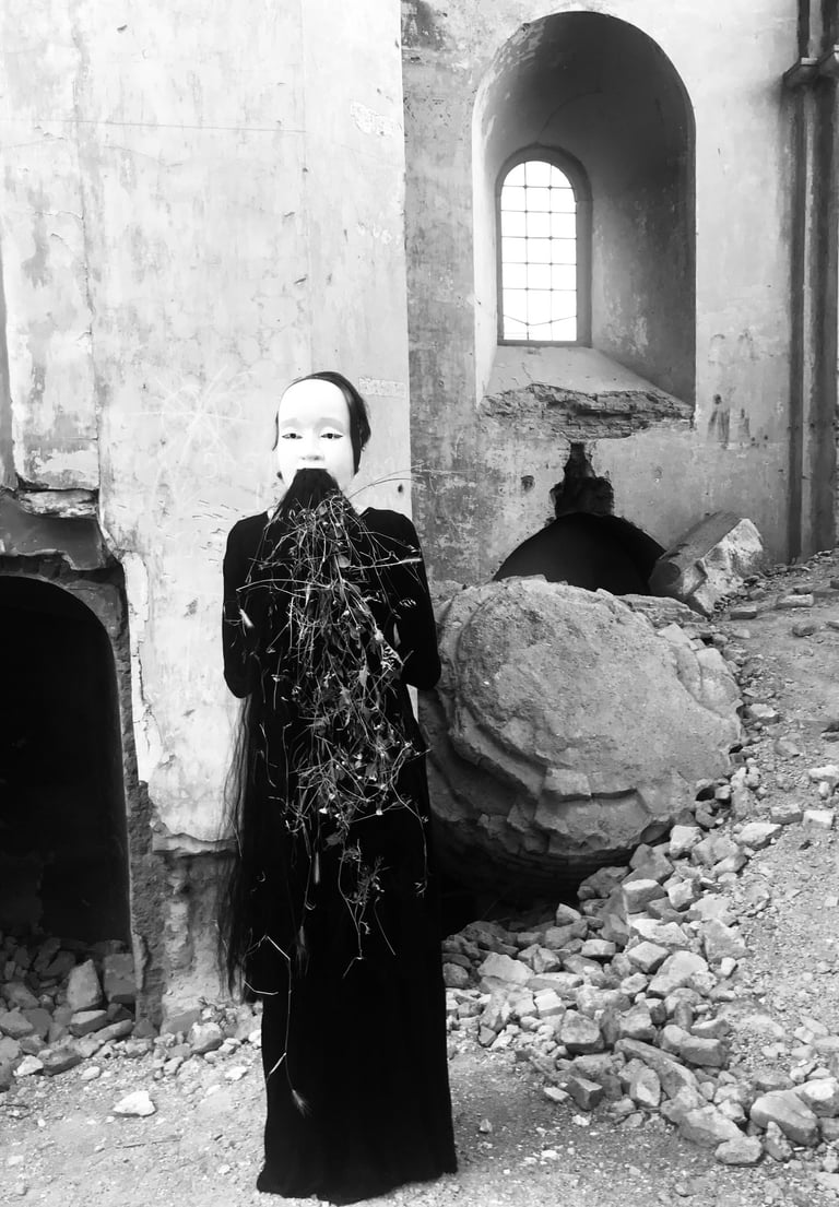 The performance and music in Rue de la Lune was captured in improvisational performances by Ambra Gatto Bergamasco, Sonia Ntova, Maximilian le Cain, Angelica Santander, Darja-Kazimira Zimina and Zura Makharadze, integrating their current or relevant art practice, localities and daily lives. The six artists represent in Rue de la Lune the Healer, the Widow, the Lover, the Jester and the Artist in a female household out of space and time going through dreamlike healing processes in desperate attempts to liberate themselves from subconscious dynamics that span multiple generations.