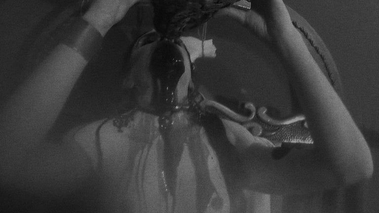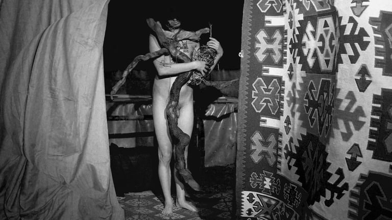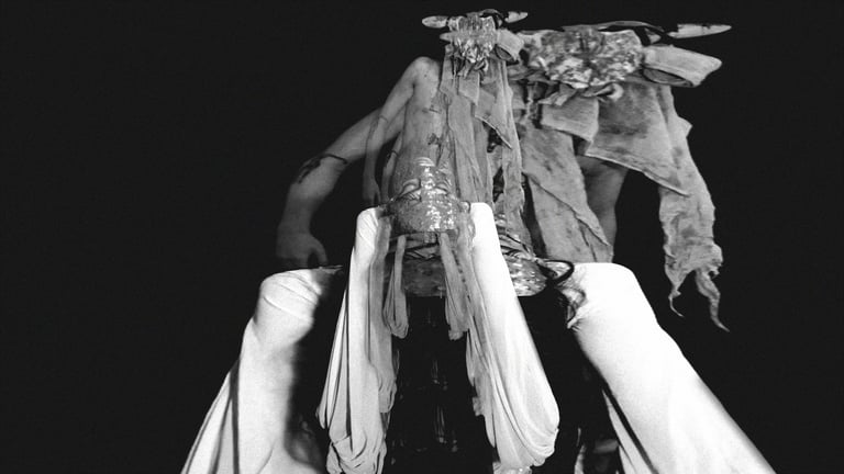 This video art is a work that captures the wreckage of chaotic performances and pseudo-scenarios performed by three artists: Darja Kazimira Zimina, Zura Makharadze, and Sagart Alhague.